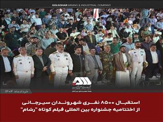 به گزارش اقتصادنامه، اختتامیه ششمین جشنواره بین المللی فیلم کوتاه "رسّام" با محوریت دفاع مقدس و مقاومت و با حضور امیر دریادار شهرام ایرانی فرمانده نیروی دریایی ارتش، بیژن نوباوه نماینده مردم تهران و عضو کمیسیون فرهنگی مجلس، سردار سلیمانی معاون سازمان بنیاد شهید و امور ایثارگران و جمعی از فرماندهان ارشد نظامی و امنیتی استان کرمان و بیش از ۸ هزار و ۵۰۰ نفر از شهروندان سیرجانی با شور و هیجان فراوان برگزار شد.