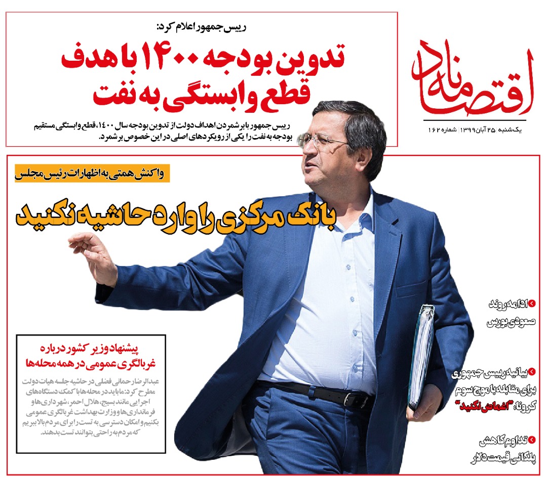 رئیس کل بانک مرکزی در پاسخ به سخنان امروز رئیس محترم مجلس شورای اسلامی عنوان کرد: واردکردن بانک مرکزی را به مباحث سیاسی و حاشیه‌ای توصیه نمی‌کنم و آن را به صلاح کشور نمی‌دانم؛ اعتقاد دارم تمام نیروی اینجانب و بانک مرکزی باید معطوف به مقابله با تحریم‌ها و کمک به اقتصاد کشور باشد.