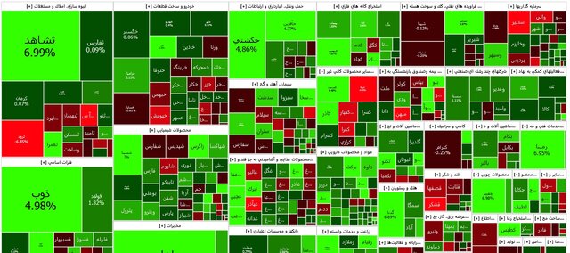 فولاد، رمپنا، اخابر و فارس بیشترین تاثیر را بر شاخص کل داشتند که همگی مثبت شدند. ذوب، ثشاهد، اخابر و کترام نیز از نمادهای پرتراکنش امروز بودند. فرابورس ایران نیز روز شنبه ۱۳۷ واحد افزایش پیدا کرد و به عدد ۲۶ هزار و ۳۹۳ واحد رسید.