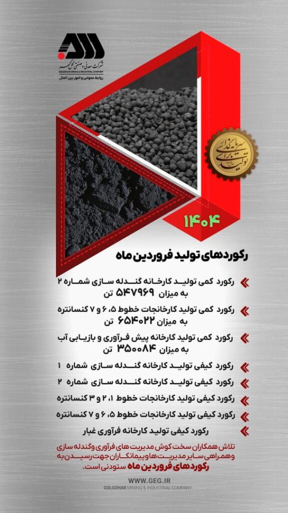 تلاش همکاران سختکوش، مدیریتهای فرآوری و گندلهسازی و همراهی سایر مدیریتها و پیمانکاران جهت رسیدن به رکوردهای فروردین ماه ستودنی است.