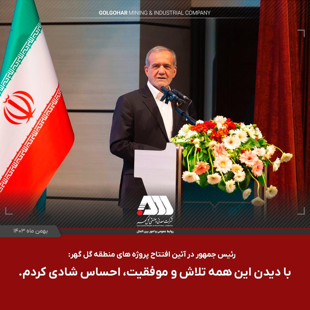 گفتنی است در آستانه سالگرد پیروزی انقلاب اسلامی، ۴ پروژه بزرگ صنعتی و گردشگری با سرمایه گذاری بیش از ۲۰ هزار میلیارد تومان و اشتغالزایی برای حدود ۳ هزار نفر امروز با حضور رئیس جمهور در منطقه گل گهر سیرجان افتتاح شد.