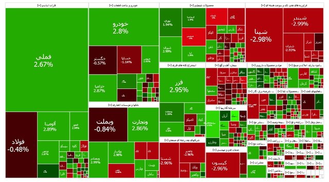فملی بیشترین تاثیر مثبت را بر شاخص بورس داشت اما فارس و پارسان اثر منفی ایجاد کردند. از نمادهای پرتراکنش نیز میتوان به خودرو، فملی و وتجارت اشاره کرد.