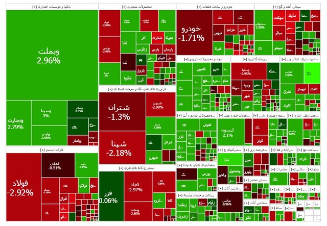 در مقابل، نمادهای بانک ملت و بانک پاسارگاد عملکرد مثبت داشتند و تا حدی از شدت افت شاخص کاستند. با این حال، فشار عرضه در نمادهای بزرگ گروه فلزات و خودروسازان، مانع بازگشت بازار به محدوده مثبت شد.
