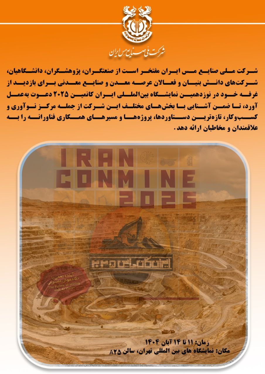غرفه شرکت ملی صنایع مس ایران، جلوهای از پنج دهه تلاش، دانش و نوآوری در مسیر توسعهی صنعت مس کشور است و فرصتی ارزشمند برای گفتوگو، تبادل تجربه و همافزایی در زنجیره ارزش مس به شمار میآید.
