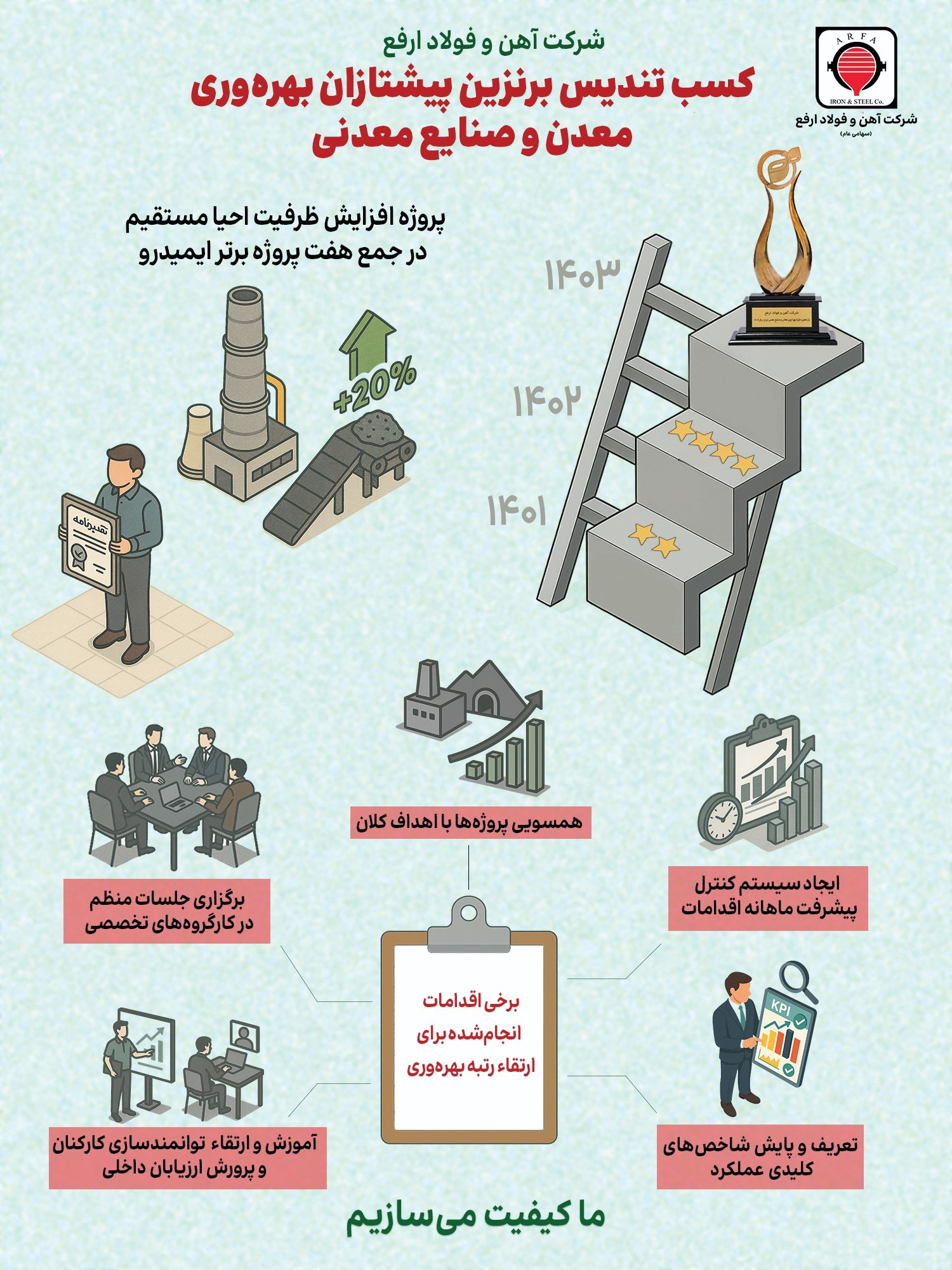 در ارفع، تعهد به بهرهوری، کیفیت و توسعه پایدار یک مسیر دائمی است.