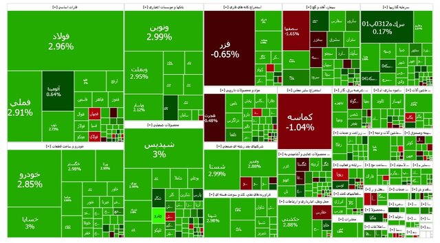 فارس، فملی و فولاد بیشترین تاثیر مثبت را بر شاخص بورس داشتند. از نمادهای پرتراکنش نیز میتوان به خودرو، فولاد و خساپا اشاره کرد.