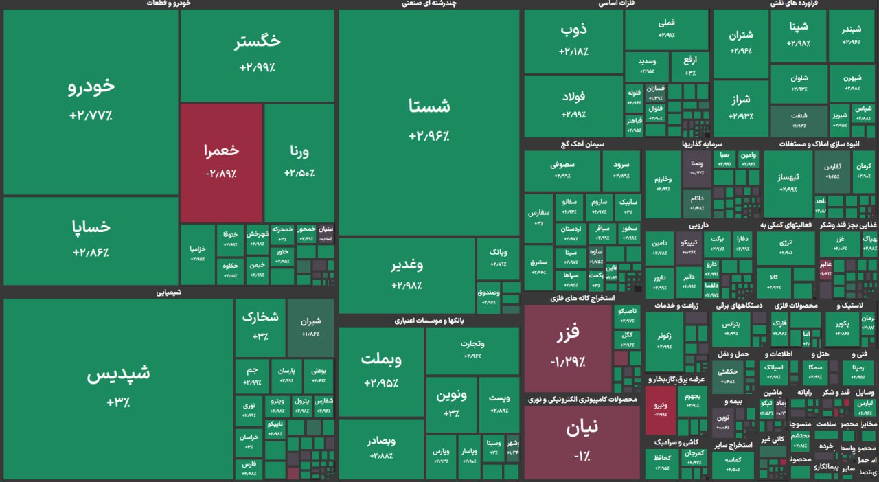 بیشترین اثر مثبت بر دماسنج بازار سهام در روز جاری به نام نمادهای معاملاتی فارس، فملی و فولاد شد، و نمادهای معاملاتی شیران، حتاید و ونیرو بیشترین اثرگذار منفی را بر این نماگر از خود بهجای گذاشتند.